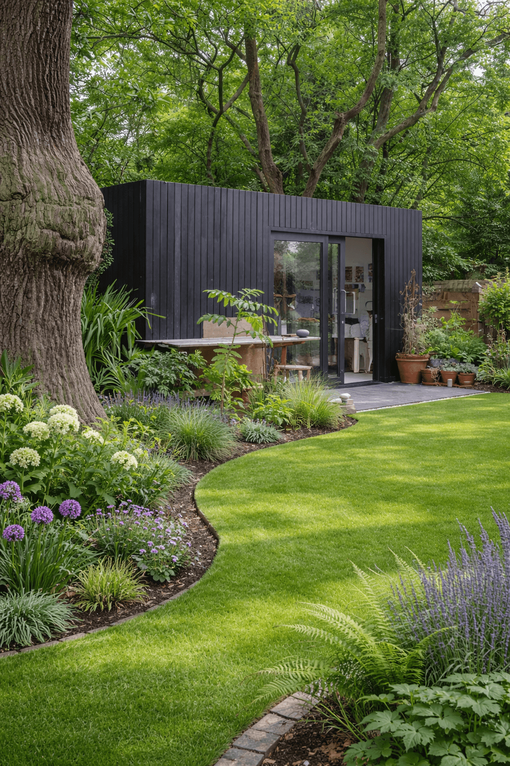 Leila, a remote-working legal consultant, needed a quiet, fully insulated garden office to separate work from home life. She chose the Eco E2 Edge — known for its sharp architectural silhouette and clean, modern design. Her build included full-height glazing, vertical red cedar cladding, and a corner window to flood the space with natural light. Positioned discreetly at the rear of her garden, the space blends natural materials with contemporary style, creating a peaceful environment for deep focus and daily use.
